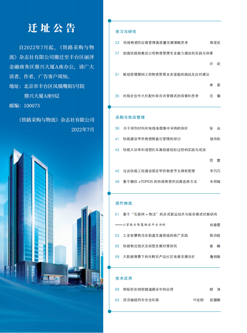 《铁路采购与物流》2022年07月 总第190期